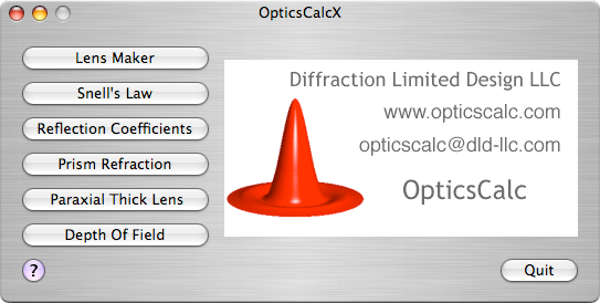 For more information about OpticsCalcX, please review the on-line manual; it should answer any question you have. Or, just download OpticsCalcX and dive right in.