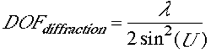 Description The Depth of Focus page computes the depth of focus and depth of field for an optical system. It also computes the object space blur and hyperfocal distance as well as the Resolution and Depth of Focus for a diffraction limited optical system with the same first order characteristics. Input Parameters The input parameters are the desired blur size (in a digital camera this might be the size of a pixel), the focal length of the lens, the object distance in meters, the wavelength of the light in nanometers and finally you must enter either the f number, the lens numerical aperture or the aperture diameter. You will notice that when you enter any of the values on the last line, the other two will update automatically. When you are entering your data, please note the units. Note that this is an automatic calculation pane so the results are updated instantaneously. ![]() Geometric Ouput Results Geometric depth of field and depth of focus are computed based lens parameters and a target you provide for the circle of confusion. The circle of confusion is selected as the maximum tolerable blur spot in the image plane. This can be determined by a number of factors. In the case of a film camera it is either the resolution of the film (typical in the case of fast film) or the resolution of the lens. In the case of a digital camera it may be the size of a pixel on the detector. Another method for determining the allowable cicle of confusion is to work backwards from the resolution of the eye and how the viewing distance. Knowing how the image will be reproduced you can translate this resolution back to the camera image. Once the size of the circle of confusion is known, the geometrical properties of the lens and the location of the object can be used to compute the range of distances in object space which will be in focus in the image plane. Depth of Field - The Depth of field values refer to the object space and they are given in meters. Both the near and far focus are given. If the far focus extends to infinity then INF is reported. Depth of field is of particular interest to photographers to determine the proper f# to make sure that your subject(s) are in focus and that unwanted objects are out of focus. Depth of Focus - The depth of focus is the range around the focal plane for which an object at a fixed distance will be in focus. This information is useful for camera an instrument designers to to specify how flat and well positioned the film or detector plane must be positioned in order to assure sharp focus. Hyperfocal Distance - The hyperfocal distance is of particular interest to photographers. This is the closest you can set the focus of your lens and still maintain focus out to infinity. If you enter your lens parameters and (object distance is not used for this computation) then take the resulting hyperfocal distance and type it into the Object Distance box you will notice that the Far Focus position will be either at, or very close to infinity. The near focus position now tells you the closest oobject which will be in focus. Object Space Blur - The size of the circle of confusion when project onto the object. In other words, this is the smallest object you can resolve in your scene. Diffraction Output Results The diffraction results are the resolution and depth of focus for your optical system if you assume that the optics are perfect, or diffraction limited. You can never do better than the diffraction limit. These values are important for engineers and scientists who are designing optical system and need to know the best resolution possible for a given wavelength and set of lens parameters. They are also important as a cross check for your geometric results. In particular, your blur size can never be smaller than the image resolution given under Diffraction Results. Resolution - The image and object resolution are the diffraction resolutions in image and object space. These values are dependent on the distance from the lens to the plane of interest (object or image) (d), the aperture size (A) and the wavelength ( ) using the following equation:Depth of Focus - There is also a specific method for computing the depth of focus for diffraction limited systems. For those who are interested the equation for the diffraction depth of focus is: ![]() as seen from either the object or image plane. Phone: (860) 276-0450 Fax: (860) 620-9026 e-mail: btruax@dld-llc.com dld-llc.com |